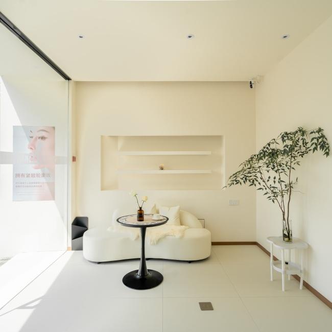 某社区美容院案例中,环形动线围绕中央产品展示区展开,周边划分 4 间护理室、接待区与休息区。各区域视线通透,客户从接待到护理路径顺畅,避免折返。通过嵌入式收纳设计,200 平空间利用率提升 30%,同时保持整体通透感。